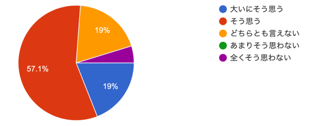 「あなたは、青葉台駅周辺のまちを、「好きなまち」と感じますか」という質問に対して、4分の3以上の方が、「そう思う」または「大いにそう思う」と考えていることがわかりました(下図)。